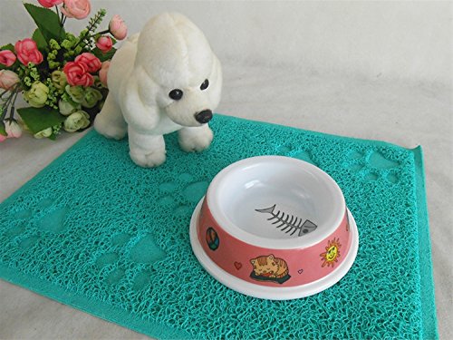 Potpor, tappetino per ciotole con impronte di zampe, in PVC effetto erba, larghezza 30 cm x lunghezza 40 cm x spessore 0,7 cm, per gatti e cani, color verde