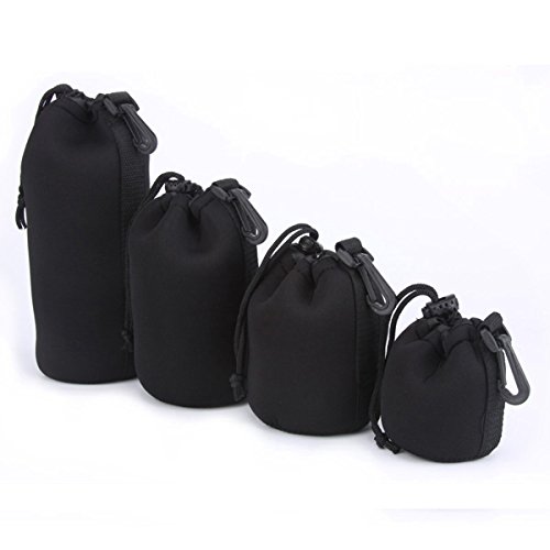Lens Pouch, Pechon (4 pezzi) Foto Thick protettiva in neoprene insieme del sacchetto per l'obiettivo DSLR (Canon, Nikon, Pentax, Sony, Olympus, Panasonic) - Include: Small, Medium, Large e Extra Large Sacchetti