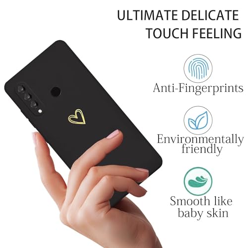 POUHYE Cover per Huawei P30 Lite Custodia Originale, Gomma Gel di Silicone Liquida Cover con Protezione Fotocamera, Morbida Sottile e Antiurto AntiGraffio Case con Motivo a Amore Cuore Nero