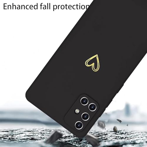 POUHYE Cover per Samsung Galaxy A51 Custodia Originale, Gomma Gel di Silicone Liquida Cover con Protezione Fotocamera, Morbida Sottile e Antiurto AntiGraffio Case con Motivo a Amore Cuore Nero