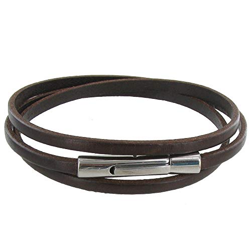 LES POULETTES BIJOUX - Bracciale Donna Pelle Piatto Chiusura Acciaio Inossidabile - Classics - Marrone Scuro