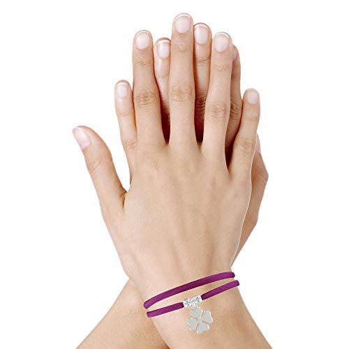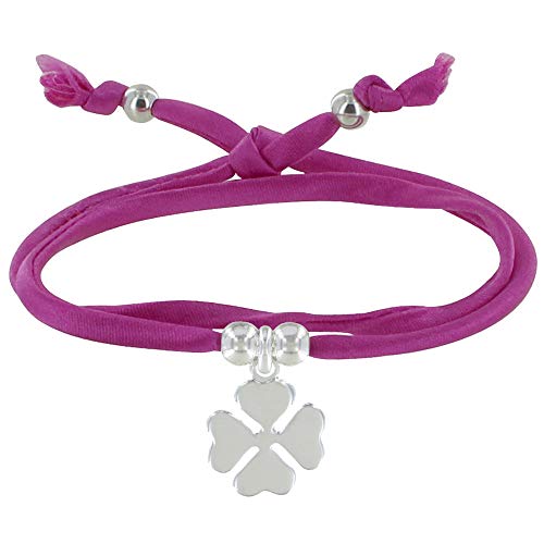 Les Poulettes Bijoux - Bracciale Doppia Torre Collegamenti di Raso e Trifoglio Argento - Fucsia