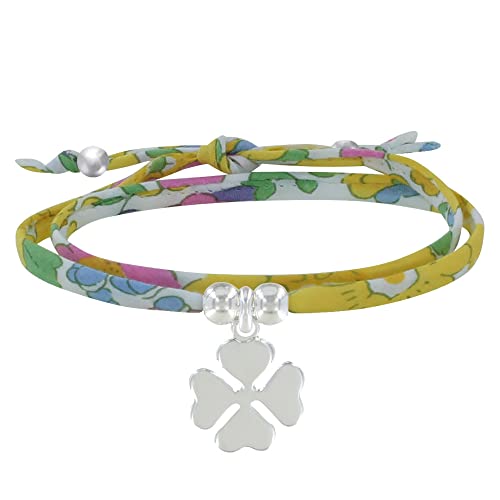Les Poulettes Bijoux - Bracciale Doppio Giro Collegamenti Liberty e Trifoglio Argento - Colors - Giallo