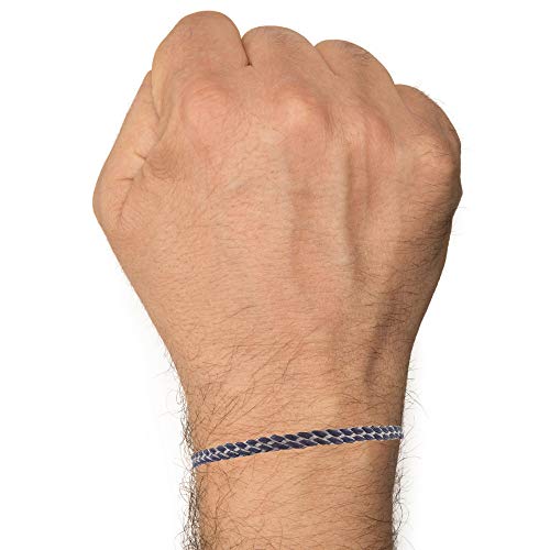LES POULETTES BIJOUX - Bracciale Misto Cuoio e Acciaio Intrecciaro Piatta - Blu Navy