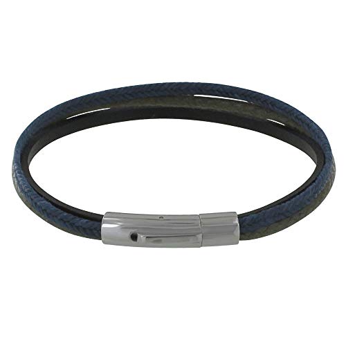 Les Poulettes Bijoux - Bracciale Uomini Miscela Lino Cotone Pelle - Verde Intenso