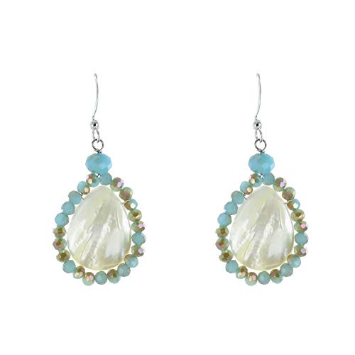LES POULETTES BIJOUX - Orecchini in Argento Goccia di Madreperla Perline di Vetro Sfaccettate Blu