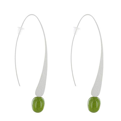 LES POULETTES BIJOUX - Orecchini Gancio Piatta in Argento Metallo e Perline di Ceramica - Verde