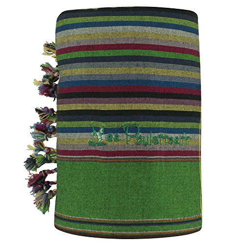 LES POULETTES - Kikoy Telo Mare in Cotone Spugna Rigato Color Blu Scuro Verde - Rosso