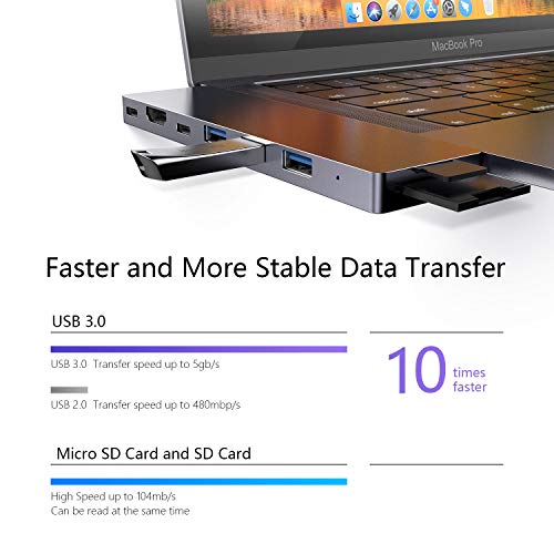 Trasferitore dati ultra veloce - USB 3.0/SD e Micro SD: 5 GB/s - HDMI: 4 K * 30 Hz/1080p * 60 Hz risoluzione - Tipo C Port: 10 GB/s e 100 W di potenza garantiscono trasferimenti di dati estremamente rapidi e consentono quindi un flusso di lavoro perfetto, sia in ufficio, durante la navigazione, in viaggio o a casa.