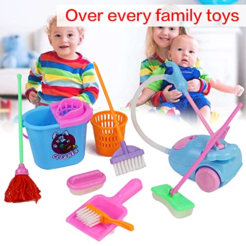 Povanjer Set di 9 giocattoli per la casa da gioco realistici giocattoli per la pulizia finta di pulire la casa Set da gioco include scopa a secchio pulito - ideale per i bambini