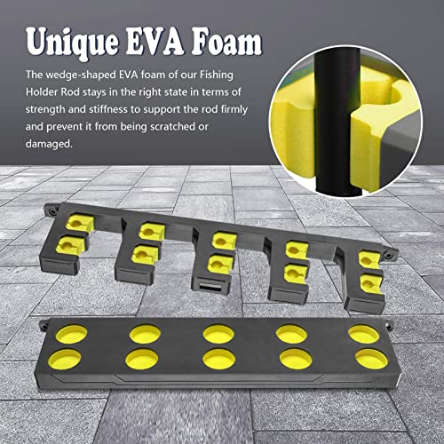 Schiuma EVA unica: la schiuma EVA a forma di angolo della nostra canna da pesca rimane nel giusto stato in termini di resistenza e rigidità per sostenere saldamente la canna e impedire che si graffi o si danneggi. Nota: diametro asta applicabile: 0,2"-0,5" (5mm-13mm)