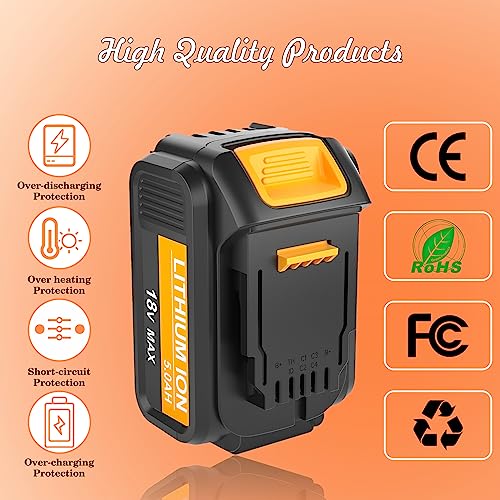 Powayup 2 × 18V Sostituzione per Dewalt batteria