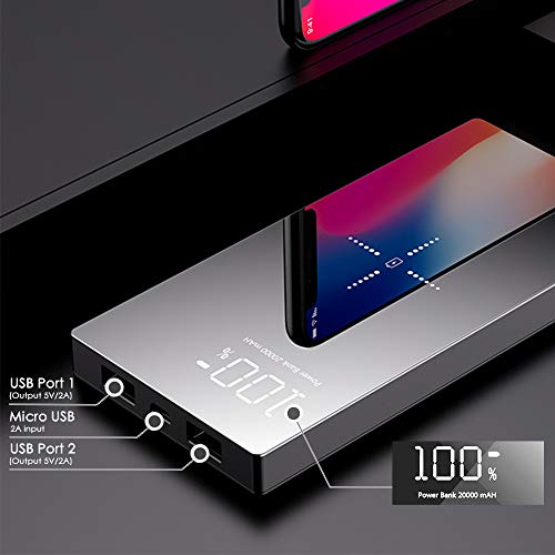 Power Bank 20000mAh Caricabatterie Portatile Caricatore Wireless con 2 Porte USB e Display LCD Digitale di Entrata Batteria per Smartphone, tutti I dispositivi compatibili Qi e altri Dispositivi USB