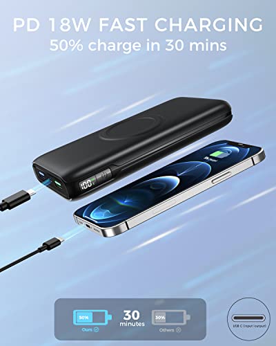 Ricarica ad alta velocità da 18 W: La porta USB-C bidirezionale supporta l'erogazione di potenza da 18 W per alimentare rapidamente i tuoi dispositivi e ricaricare il power bank stesso. Ricarica completamente il tuo telefono in meno di 2 ore e ricarica completamente in 8 ore con un caricabatterie PD.