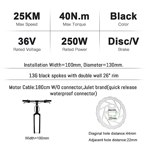 YOSE POWER 26'' 36V250W Kit di Conversione, Motore da Ruota Anteriore per E-Bike, Nero Kit Ebike Conversione per Bici Elettriche