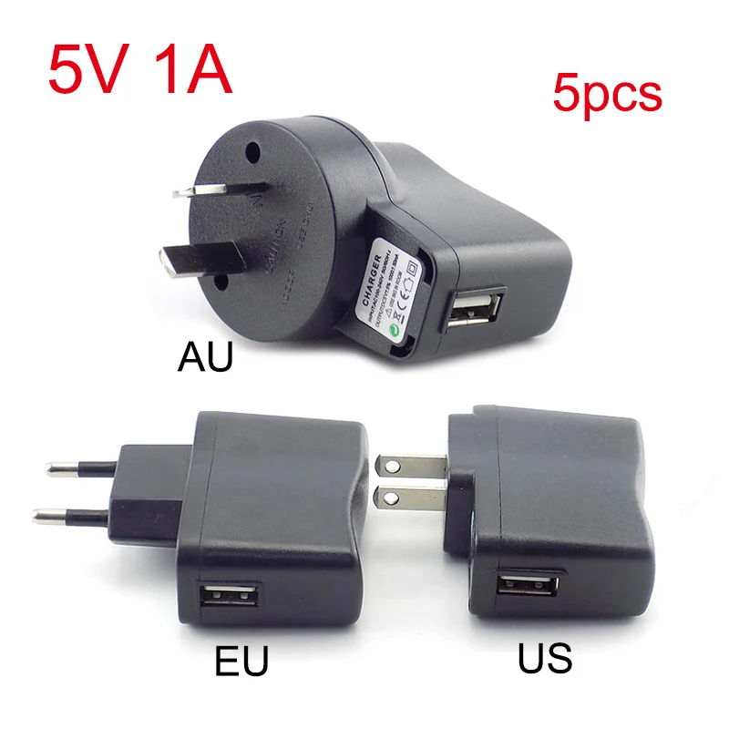 5pcs 5V 1A Power Adapter Micro USB Charger AC to DC Charging Universal Power Adapter Supply 100V-240V Output Electron