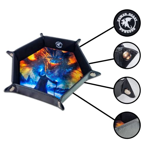 Power Beast Dungeon Tavola Dadi Mago e Drago, Vassoio Dadi, Set di Dadi, 7 Pezzi Dadi Inclusi, Dadi Poliedrici, D&D, Dungeons And Dragons, DND, Dungeon Master, Giochi di Ruolo.