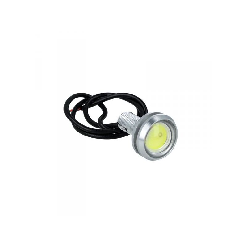 Power Led A Bottone Modello Slim 12V 2W Bianco Freddo IP67 Eagle Eye Led Luci Diurne Carcassa Argento Un High Power Led a Bottone Colore Argento Eagle Eye Led(Led Occhio Dell'Aquila) -Modello Slim 12V 2W- -Bianco Freddo 5500K-6000K- -Alta potenza 200 Lumens- -Dissipatore in alluminio- -Si fissa con la vite- -Impermeabile IP67- INFORMAZIONI UTILI: Marca: CARALL Voltaggio:DC 12V IF: 165mA Potenza: 2W Angolo di Illuminazione: 160° Valore CRI: RA>80 Fattore di Potenza:>0,9 Colore: Luce Bianco Freddo Colorazione: 5500K--6500K Luminosità:200 Lumens Misura: Diametro Frontale 22mm,Diametro Cilindro Incasso 10mm,Altezza Totale 32mm,Altezza Lampada 10mm Filo di alimentazione:40cm Tipo di lente: Chiaro Trasparente Durata di Vita: >30000 ore Questa led ha un base alluminio di colore nero elegante come dissipatore,si fissa con la vite,impermeabile IP67,funziona direttamente a 12v,è un prodotto con tanti diversi utilizzi come: 1,Lampada illuminazione per automobile e barca da DC 12V:Ideale come