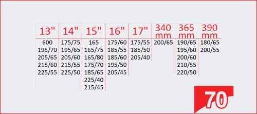 COMPATIBILE CON MISURE: 175/75-14 185/55-16 185/60-16 220/55-365 600-13 195/70-13 205/65-13 215/60-13 225/50-13 195/65-14 205/60-14 215/55-14 225/50-14 165-15 165/75-15 175/70-15 185/65-15 215/45-15 225/40-15 175/60-16 195/50-16 205/45-16 175/55-17 185/50-17 205/40-17 200/65-340 195/60-365 200/60-365 210/55-365 180/65-390 200/55-390