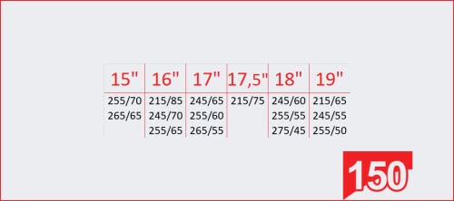 COMPATIBILI PER LE MISURE 265/65-15 245/70-16 255/70-15 255/65-16 215/75-17,5 245/65-17 245/60-18 255/60-17 255/55-18 245/55-19 255/50-19 265/55-17 275/45-18 215/65-19