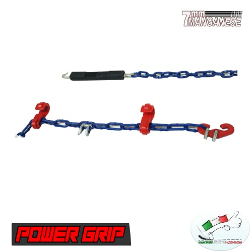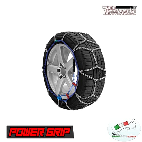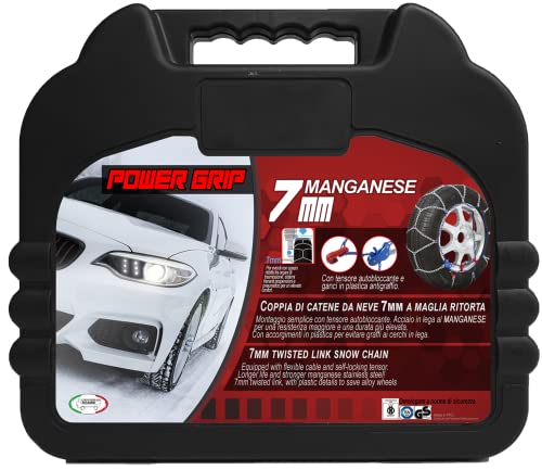 POWER GRIP Catene da Neve 7mm Omologate e Certificate Catene da neve 7mm a maglia ritorta Montaggio semplice e con tensore autobloccante. Acciaio in lega al manganese per una resistenza maggiore e una durata più elevata. Con accorgimenti in plastica per evitare graffi ai cerchi in lega