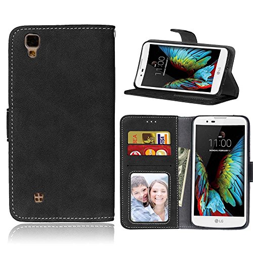 COZY HUT Per LG X Power Cover Custodia,Retro Matte Design Con Magnetico Snap-on Book style Internamente Silicone TPU Custodie Cover Per LG X Power - nero opaco