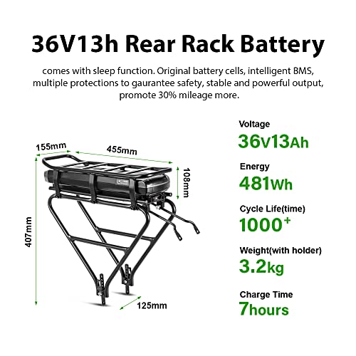 YOSE POWER Ebike Kit 36 V250 W 28" motore anteriore bicicletta e-bike hub kit di conversione controller integrato con batteria 36 V 13 Ah portapacchi per freni a disco da 28" V-Brake bicicletta