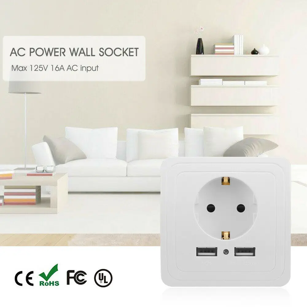 16A Wall Power Electrical Socket Flush-Mounted Bedroom Socket AC 250V 16A Wall Embedded Double USB EU Standard Outlet Sockets