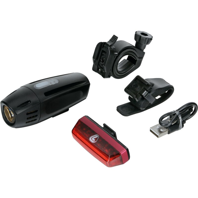 Fanale anteriore con luce bianca da 300 lm? Fanale posteriore con luce rossa da 35 lm? 3 funzioni: luce fissa, mezza luce, lampeggiante? Led Cob di ultima generazione a basso consumo? Montaggio universale, adatto per manubri e telai da ? 22,2 a 31,8 mm? Staffe di fissaggio con sistema di innesto / disinnesto rapido