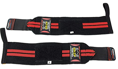 Grip Power Pads Fasce per Allenamento 1 Paio (2 Fasce), per Palestra, polsiera in Cotone, per Uomo e Donna, di Prima qualità, con PRO Rubber (Red 2 Stripes, 13" or 33cm)