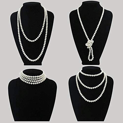 HG Power Anni '20 Flapper Great Gatsby Accessori Set 20s Theme Set con Fascia Copricapo Guanti Neri Collana Donna Gatsbby Costume