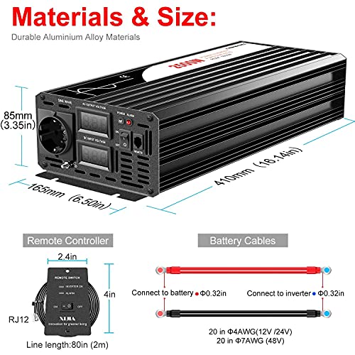 2: 【2 metri con telecomando】: adatto per camper, camion, automobili e sistemi a energia solare, è più conveniente controllare l'inverter on / off.Con 1 presa CA e 1 porte controller remote.