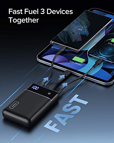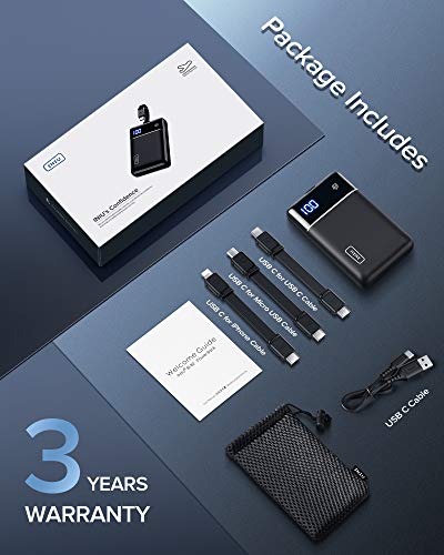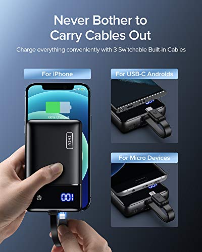 INIU Power Bank, USB C più leggero integrato 3 cavi 10000mAh Touch Display LED Powerbank, Tri-3A ad alta velocità Uscite Palm-Size Batteria esterna per iPhone 14 13 12 iPad Samsung Xiaomi Huawei ECC.