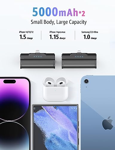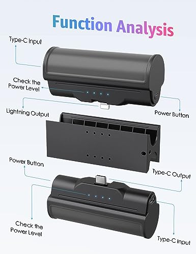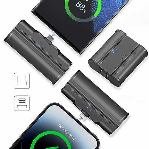 Power Bank USB C e Lighting, Podoru 5000mAh*2 Power Bank Mini Ultra Compact 2 in 1 Batteria Esterna Mini Powerbank Compatibile con iPhone Airpods Samsung Xiaomi Android e Altro, Nero
