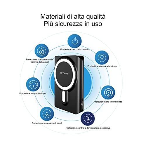 Power bank Magnetico 10000 mAh Caricabatterie Wireless Portatile Mag-Safe per iPhone 14/13/12 /Mini/Pro/Pro Series, Ricarica Rapida e USB-C PD 22W per smartphone