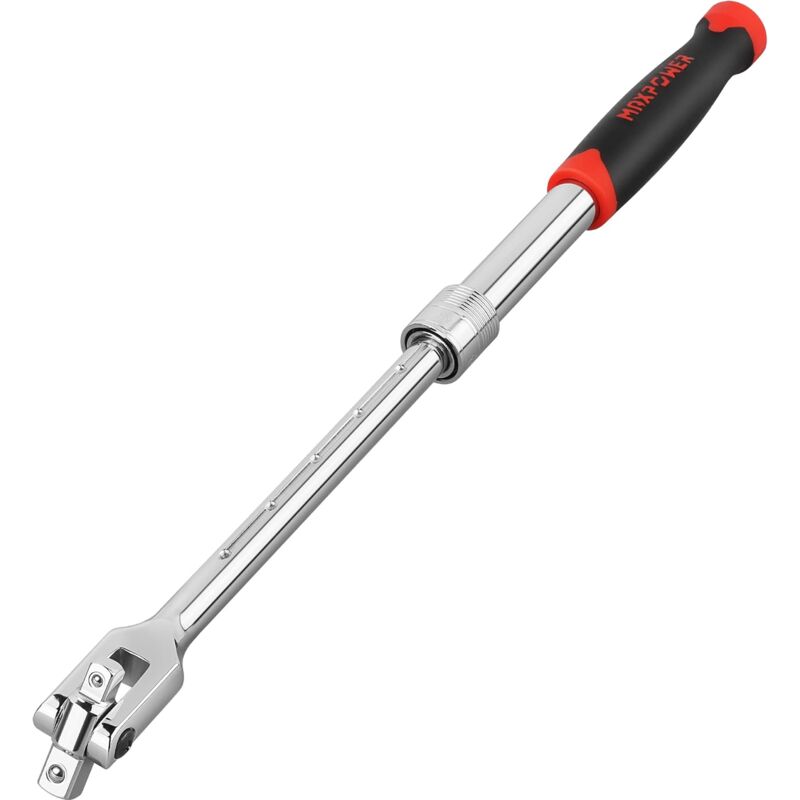 Design con manico estensibile: la lunghezza può essere estesa da 340 mm a 485 mm senza riduzione del carico. L'asta telescopica può essere bloccabile in 5 posizioni. 【Doppia unità flessibile】 Barra telescopica a doppia unità (1/2" e 3/8") per soddisfare le diverse esigenze. La testa di trasmissione Cr-Mo rotante a 360 gradi ti consente di lavorare a qualsiasi angolazione. 【Design dell'azionamento da 3/8 pollici】 La testa di trasmissione da 3/8 di pollice offre fino a 202 N.m (67,6 kg.ft) di coppia. Adatto per lavori di media e precisione. 【Design dell'azionamento da 1/2 pollice】 La testa dell'azionamento da 1/2 di pollice offre fino a 512 N.m (171,5 kg.ft) di coppia. Adatto per lavori di media e precisione. Tenuta saldamente le prese: questa chiave a bussola estensibile può rompersi o allentare i dadi e i bulloni arrugginiti, decaduti e bloccati. Barra ultra resistente per cambiare i bulloni delle ruote dell'auto. Chiave articolata professionale. 【Durevole da usare: il cuscinetto a