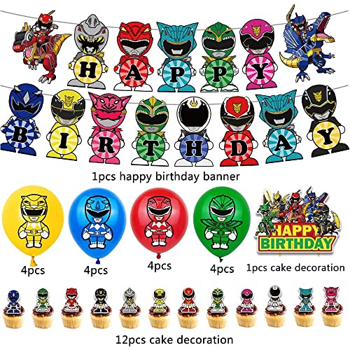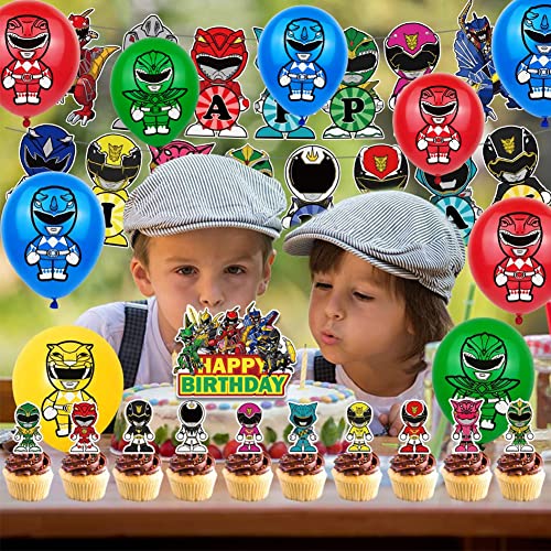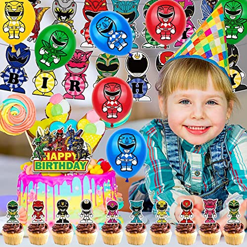 Palloncini Power Rangers Decorazioni di compleanno, Forniture per feste Power Rangers Palloncini Decorazioni per feste Banner di palloncini Decorazioni per torte per feste a tema cartoni animati