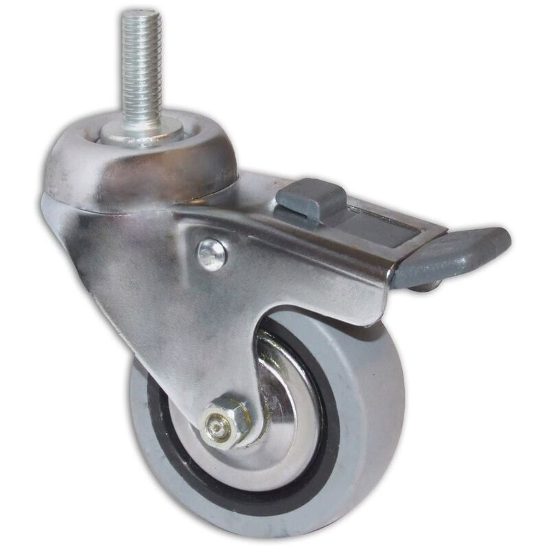 MAX POWER - RUOTA PIROETTANTE CON FRENO 12X30X100MM Con freno in metallo Corpo in lamiera cromata Ruota in gomma grigia Adatta per tutti i tipi di pavimenti