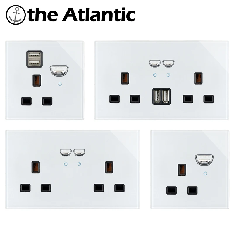 UK Plug 13A Power Socket With USB Charger Wall Outlet Double Outlet Switch White Glass Singapore Ireland Malta 146Type Socket