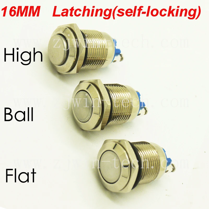1PC 16mm Power Start Button 18x30mm 1NO Latching self-locking Metal Push Button Switch IP67 250V/3A