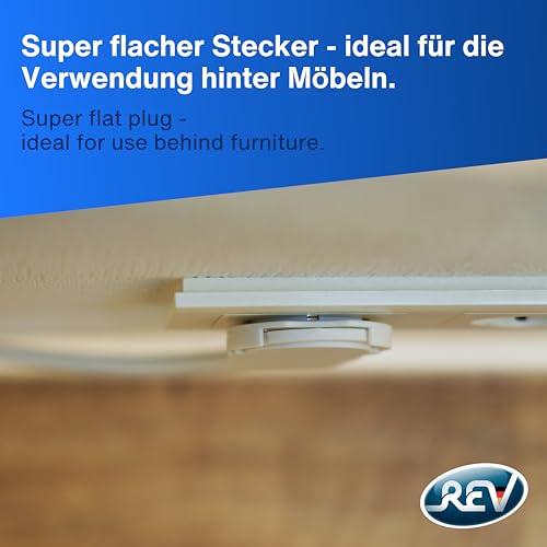 Ciabatta elettrica con spina piatta (8 mm) per aree strette dietro armadi, scaffali, cassettiere, ecc. La ciabatta elettrica è dotata di 3 prese disposte inclinate a 45°