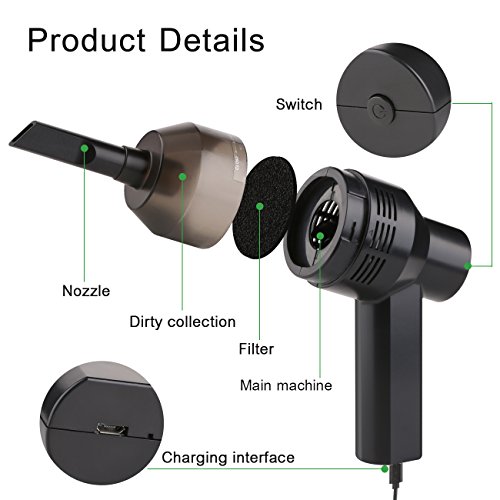 ❤ carica: solo occorrono il detergente tastiera alla porta USB del tuo laptop o computer connettere, una ricarica completa richiede circa 200 minuti. Qui potete usarlo senza fili per 30 minuti continuo e la forza di aspirazione è sempre più forte.