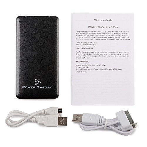 Power Theory Ultra Slim 5000mAh Portable Charger External Battery Power Bank Pack for iPhone, iPad, Samsung Galaxy, Works with Any USB-Powered Smartphone & Tablet (Black)