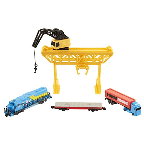 Comprende playset con gru a ponte e binari per creare un circuito lungo più di 3 metri!