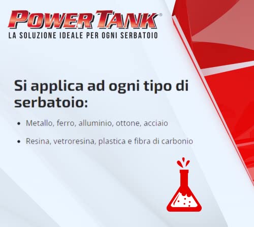 TRATTAMENTO ANTIRUGGINE PER SERBATOI - Il trattamento per serbatoio Power Tank si caratterizza per la sua capacità di sviluppare un rivestimento anticorrosivo permanente inattaccabile da qualsiasi carburante (benzina, gasolio, diesel, olio, miscela) per la rigenerazione interna dei serbatoi. Il Kit PowerTank applicato nel serbatoio, formerà una protezione che eviterà la formazione di nuove particelle di ruggine proteggendo carburatori pompa benzina, filtro benzina e iniettori del vostro motore