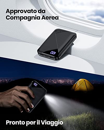 EAFU Power Bank Mini, Ultra Compatto 10000 mAh Display LED Powerbank, Doppia 3A USB C Caricatore Portatile, Alta velocità Power bank Compatibile con iPhone 13 iPad Samsung S21 Note Huawei Xiaomi ECC.