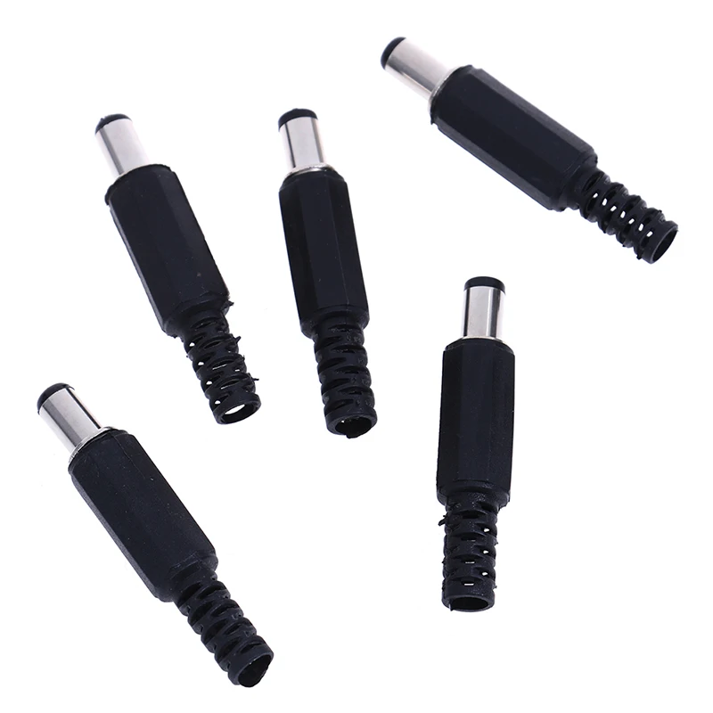 5 Pcs DC Power Plug For Welding Line Black 2.1mm X 5.5mm DC Power Male Plug Jack Adapter 5.5 X 2.1 Mm