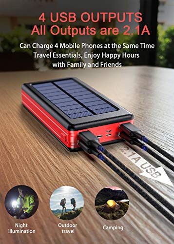 Batteria con 4 ingressi e 4 uscite: power bank a energia solare può supportare la ricarica e lo scarico simultaneamente, la ricarica simultanea per 4 dispositivi e consente un qualsiasi pannello di tipo C, micro o solare per caricare la batteria.