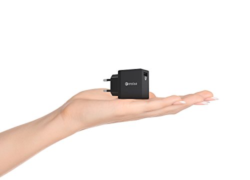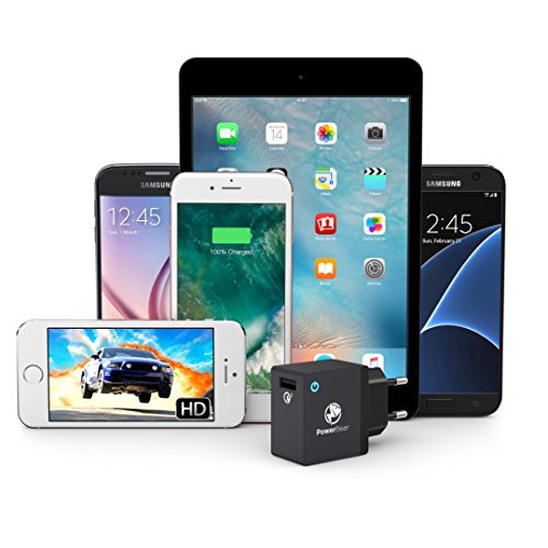 PowerBear QC3.0 Caricatore Veloce [18W] Qualcomm 3.0 Caricatore per Samsung, LG, HTC, Note, iPhone, Nexus e PowerBank [Caricabatterie da Muro 3.0 Certificato Qualcomm] - Nero [24 Mesi di Garanzia]