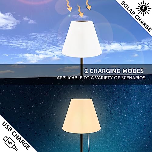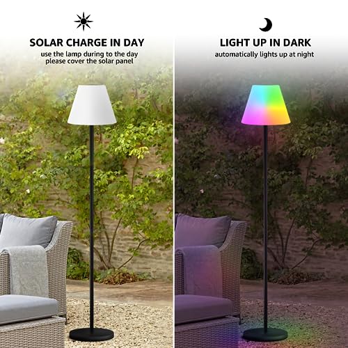 [Design elegante]: la lampada da terra solare per esterni ha un look moderno e minimalista. La base robusta e l'asta in metallo assicurano che la lampada da terra sia stabile e sicura per un uso esterno a lungo termine. Robusta e durevole, non è facile da far cadere.